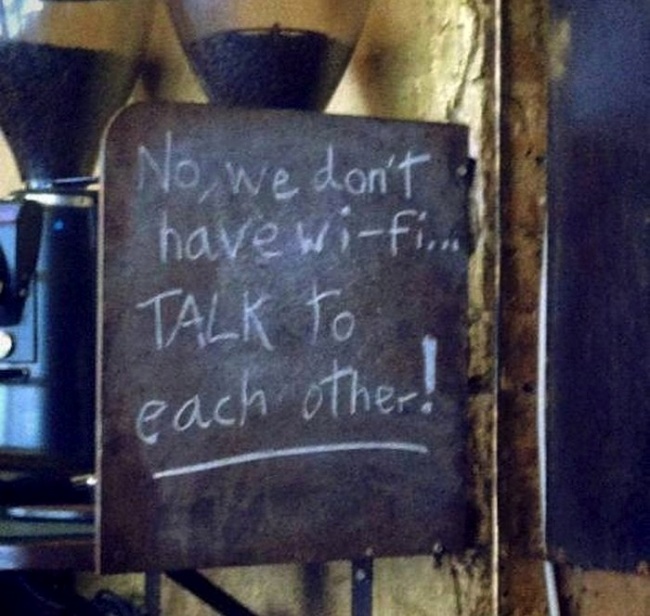 У нас нет wi-fi. Разговаривайте друг с другом.
