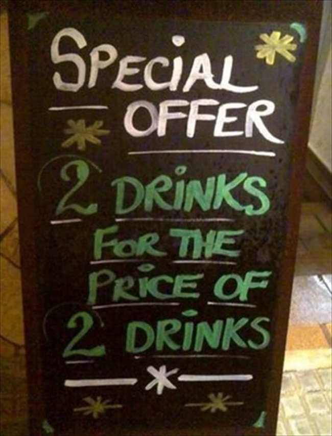 Специальное предложение — два напитка по цене двух напитков. Остряки, однако.